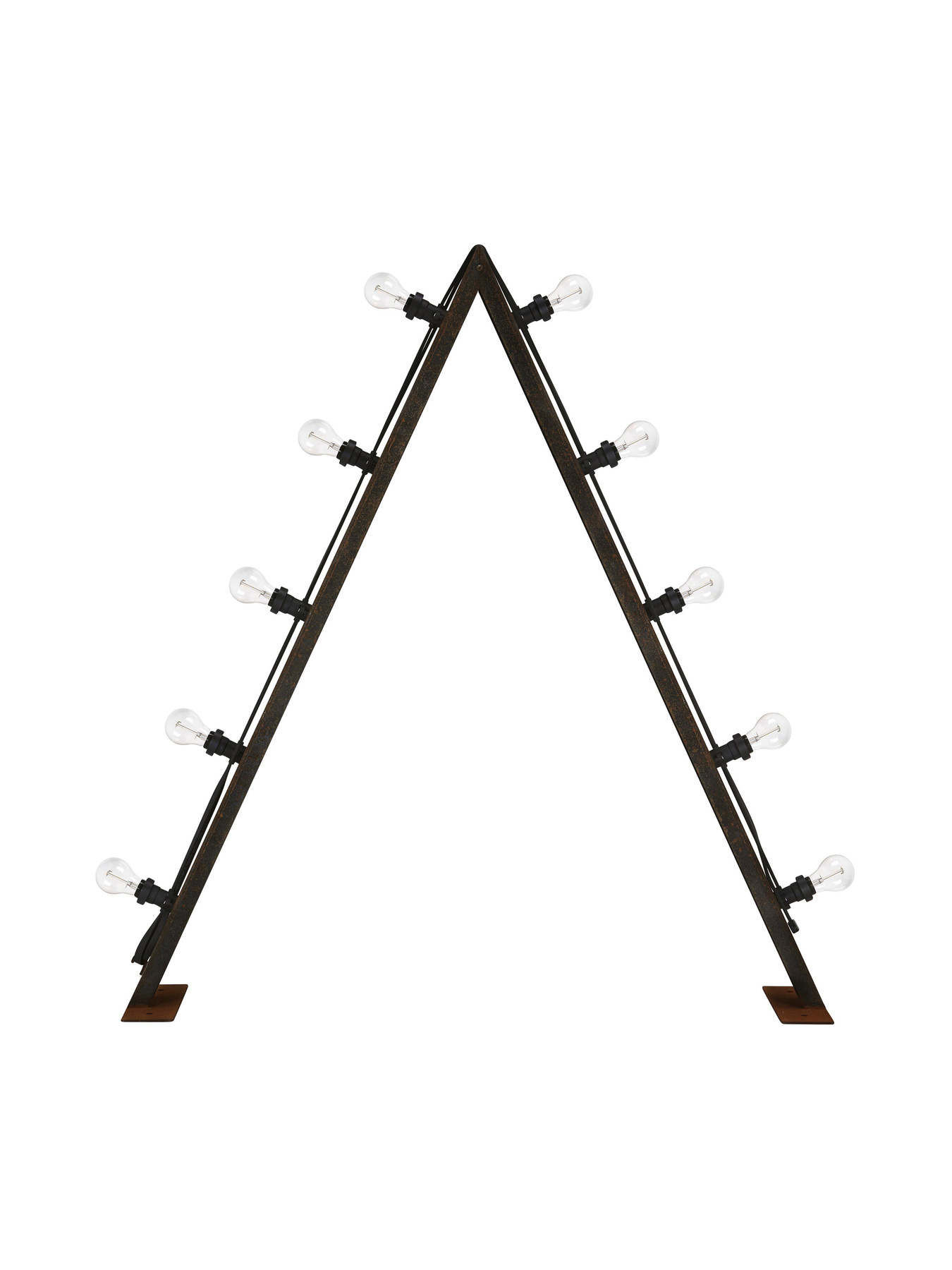 Bright candelabra in cortén steel. The candelabra is manufactured in Sweden and is delivered in its original dark gray steel color. A rusty surface is slowly formed when the product is allowed to stand outdoors and after a while the entire candelabra is rusty and gives a warm impression. The candelabra is delivered in a box together with Bright light loop (1897203) and 10 Bright light sources (806099)
